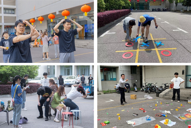 本次运动会内容丰富且形式新颖,提供了多个趣味项目,通过各关卡比赛与不同奖励相对应的方式,进一步增加了活动的可玩性并提升了同学们参与活动的积极性。你画我猜环节,通过肢体动作与语言描述,测试和伙伴们间的默契程度;“奔跑的井字棋”,将井字棋与接力跑结合,冷静的头脑与矫健的步伐缺一不可;套圈游戏,滚动着的套环扣人心弦,只有运气与实力兼备,才可赢得全场的欢呼。在趣味运动会的赛场上,同学们激情洋溢,充分展现了我院学生积极进取、奋发向上的精神风貌和团结协作、顽强拼搏的体育风采,院长也走到同学们中间,和同学们共同体验运动乐趣。