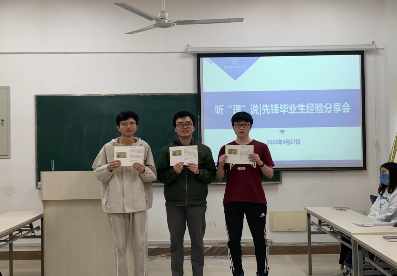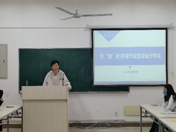 4月27日下午4点,betway西汉姆联第一期“听‘理’说”先锋毕业生经验分享会活动于理学楼547会议室举办,活动邀请理学实验班学生张凯峰、周易、张子木为主讲人,betway西汉姆联大一大二学生代表及辅导员刘思佳、胡诗帆、邢临川、陈越参加会议。分享会旨在搭建理学实验班与低年级学生间的交流平台,帮助低年级同学传承实验班优秀同学追求卓越的精神、学习中的好经验、好做法,助力自身成长成才。