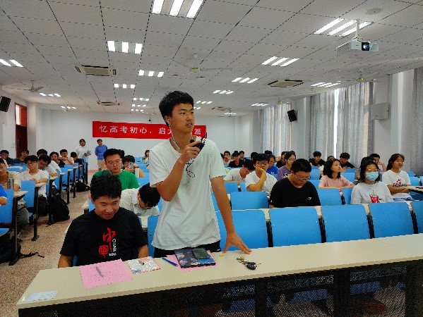 郑同学在分享中提到,这次期末考前的“忆高考,启新篇”活动,让他想起了高中时班级在高考前集体远足27公里、磨练意志的难忘活动,都是对考前的一次斗志激发,面对着全班在一周前专业课程考试的不理想,他向同学们发出了“拼过高考走进大学,面对这样的成绩,我们甘心吗?”,引起了同学们共同的反省反思。