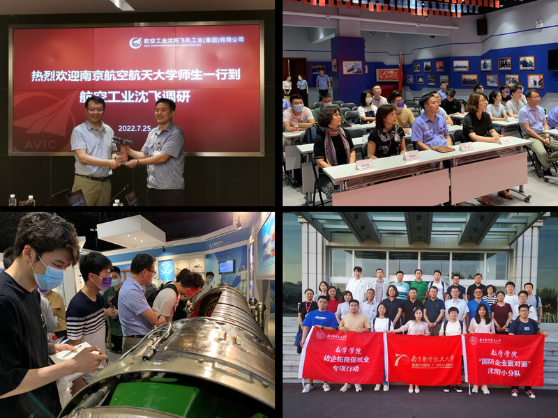 为深入贯彻党中央、国务院及江苏省委、省政府关于高校毕业生就业工作的决策部署,落实学校访企拓岗促就业专项行动要求,推动校企合作、深入了解国防企业人才需求,促进毕业生投身国防就业主战场,7月25日至26日,betway西汉姆联党委书记许静、院长王春武带队赴辽宁沈阳开展“国防企业面对面”活动,先后走进航空工业沈阳飞机工业(集团)有限公司、航空工业沈阳飞机设计研究所、中国航发沈阳黎明航空发动机有限责任公司、中国航发沈阳发动机研究所。学院党委副书记周佼佼、副院长蒋建林、校就业创业指导服务中心就业管理部主管张月铭、系主任、教务员、辅导员代表以及来自全校6个学院的15名本硕博同学共同参加了走访。
