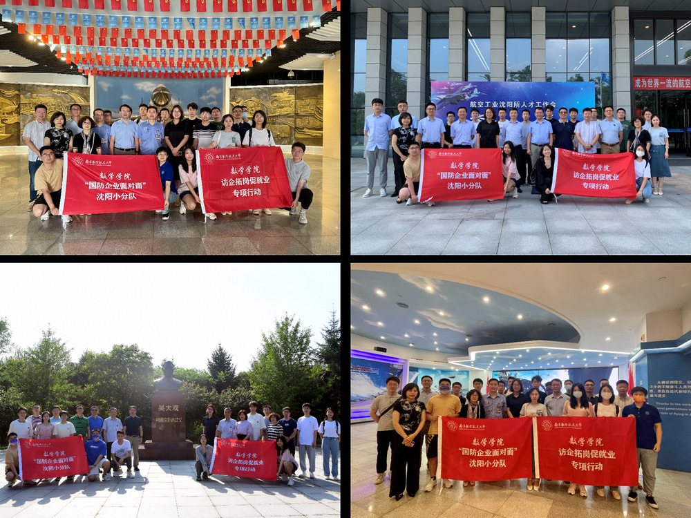在航空工业沈阳飞机工业(集团)有限公司,副总经理邓吉宏、党委组织部/人力资源部赵磊、副部长谷长喜、工程技术中心主任工程师刘标、工程技术中心工艺研究所所长刘明刚、党委组织部/人力资源部员工管理室主任刘啸飞等热情接待师生一行,陪同参观了沈飞航空博览园、罗阳纪念馆、运营管控中心、生产车间、试飞站等。沈飞航空报国的奋斗史和现代精益管理给师生留下了深刻印象。交流中,赵磊表示,南航为沈飞发展输送了一批批人才,为沈飞发展做出重要贡献,欢迎更多南航学子加入沈飞。许静表示,沈飞是“中国歼击机的摇篮”,是南航学子就业的主战场,希望通过走访增进交流,更精准对接沈飞需求,为企业发展提供更多人才、智力支持。王春武介绍了学校、学院的发展情况,在数学学科中找到结合点和发力点,期待基础学科为航空工业发展做出更多贡献。