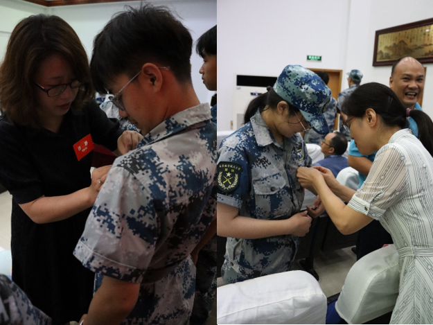 院党委书记许静为2022级新生代表们佩戴院徽,同学们正式解锁“南航数学人”新身份。