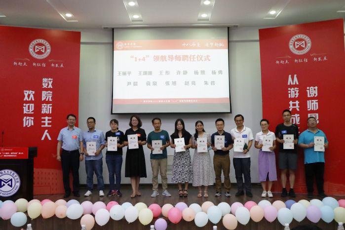 同时,每位“1+4“领航导师为对接宿舍的各位同学佩戴了院徽,传递数学人的使命担当。