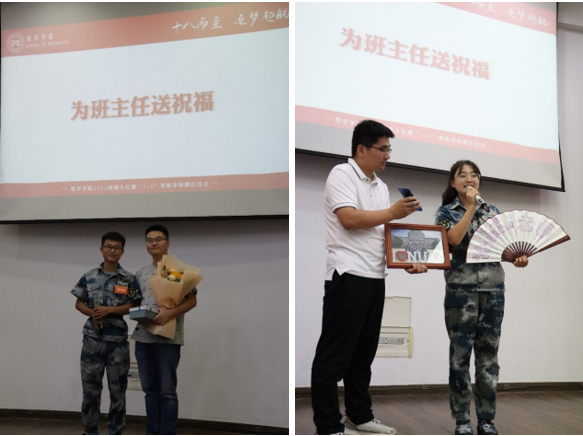 各班同学也为班主任们送上了暖心祝福。0822101班的同学们为班主任送上了一份满含祝福的日历,寓意共同走过每一天,日历上的每一个节假日中,都有一位班级同学的祝福;每一个节日上都提前写上了节日祝福。0822102班的同学为班主任准备了班级的第一张合影,并用班级全体同学的名字组成老师名字“孙春龙老师”写于扇子上赠与班主任,表达勇于与老师同在。0822401班每位同学都为班主任写了一张明信片,并装订成册,放在精心制作的礼盒里,时时陪伴老师。同学们的礼物深深打动了班主任们。班主任们殷切为同学们寄语,鼓励同学们珍惜大学时光,把握成长机会,在数院努力成长。