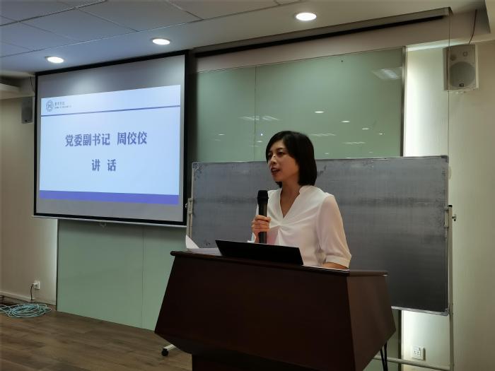 周佼佼结合研究生阶段学习特点,给出了三点建议,一是要调整学习方法,尽快融入研究生学习生活;二是要学会沟通,培养主动沟通的意识和善于沟通的能力;三是要遵守纪律,她提醒同学们要时刻保持对规则的敬畏,严谨逾越红线。