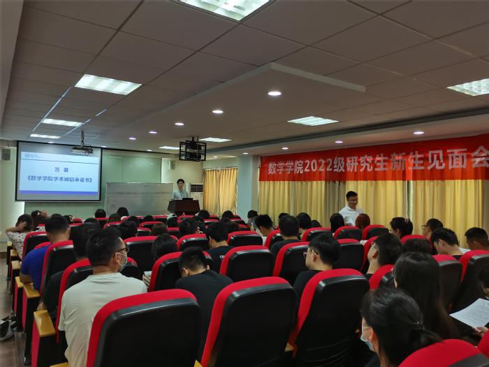 龚荣芳,蒋辉和周良强分别从计算科学系、概率统计系和数学系的师资力量、科研方向、学术要求等方面为新生做出了具体指导。鲁小林就研究生培养方案、研究生课程安排和新生进行了交流。