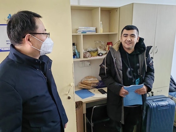 2月12日下午,许静、王春武分别前往东区、西区学生宿舍,看望预科和各年级本科生,亲切交流返校感想,关心同学们身体健康和复习进展。并勉励同学们做好大学发展规划,重点鼓励大一同学们坚定专业信心,低年级打好基础,高年级厚积薄发。同时,他们也提醒同学们近期天气较冷,注意防寒保暖,全方面关注关心同学们学习生活状态。