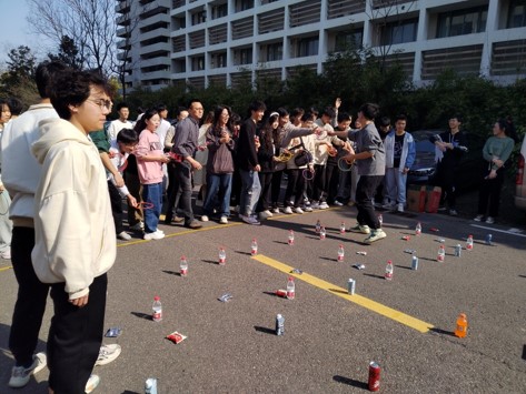 趣味运动形式上重在师生全员参与,重在放松身心。乒乓球接力比赛中各宿舍同学与“1+4”导师联合组队、相互配合,争分夺秒,携手并进中争取好成绩。班级拔河比赛中,班主任们带队,“1+4”老师共同上阵,与同学们同心协力,一声声加油、一声声口号,师生们尽情挥洒汗水,激烈的比拼中进一步增强了班级凝聚力、增进了师生感情。