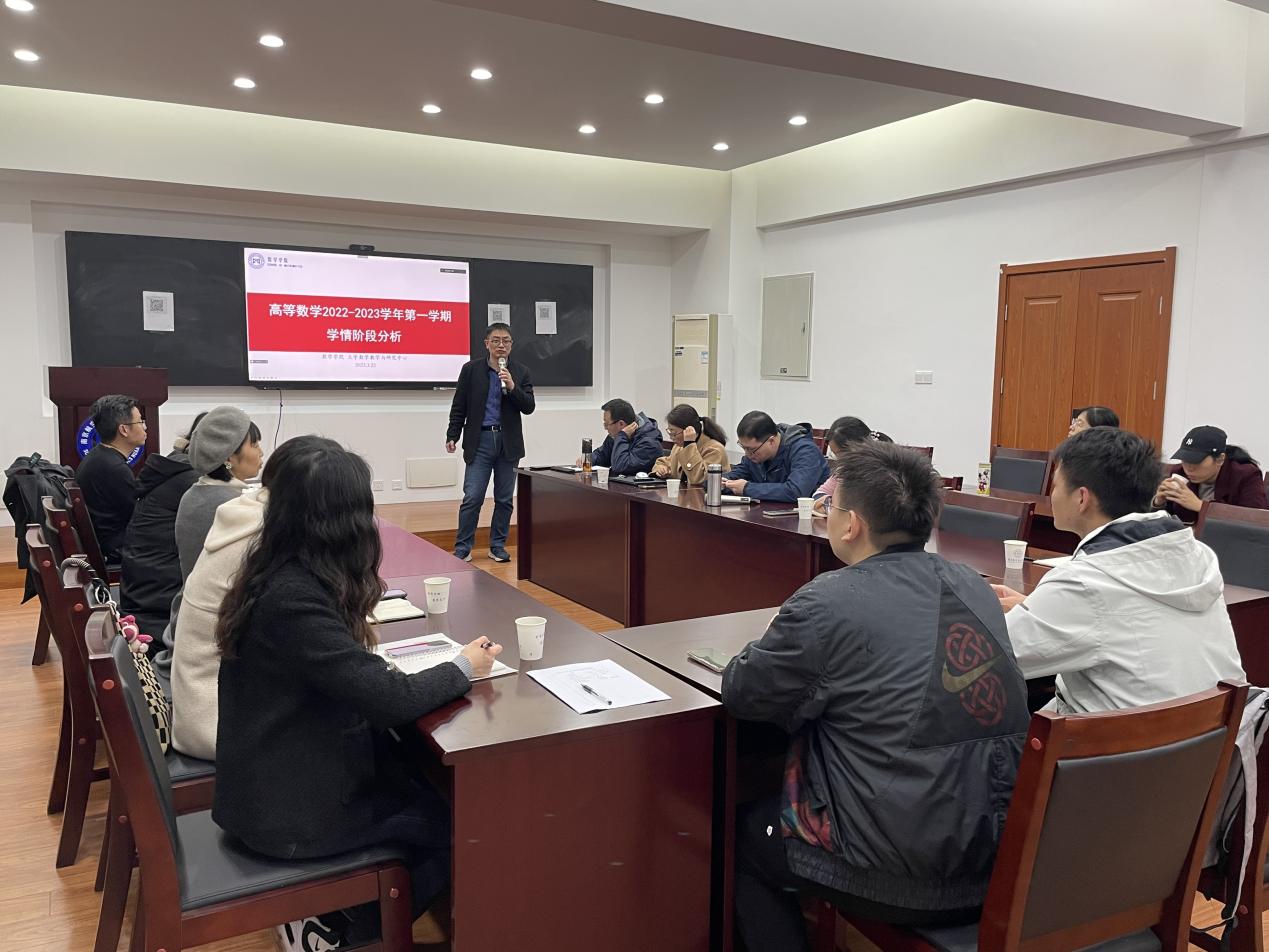 为深入贯彻学校《公共基础课程教学团队建设与管理办法》,提升公共基础课程教与学的建设质量,进一步加强人才培养中心地位,2023年3月22日下午在理学楼321会议室,betway西汉姆联召开高等数学学情分析研讨会,高等数学主讲教师、相关学院教学办主任、教务老师以及大一辅导员参加会议,会议线上线下同步进行。会议由betway西汉姆联副院长蒋建林主持。