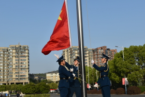 上午7点,升旗仪式正式开始。伴随着《义勇军进行曲》,英姿飒爽的国旗班整齐地迈向国旗广场中心。全体师生注视着冉冉升起的五星红旗,奏唱国歌。