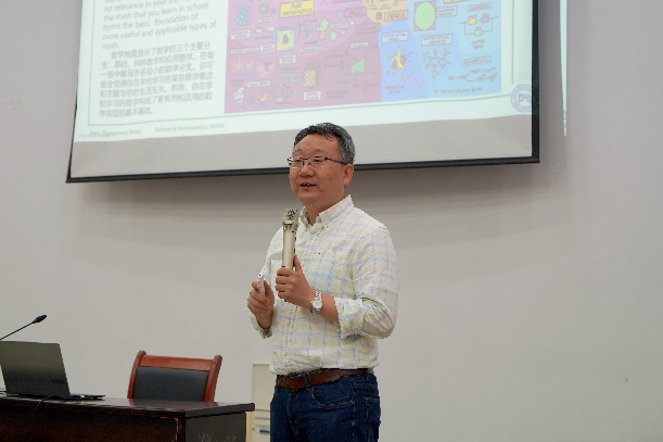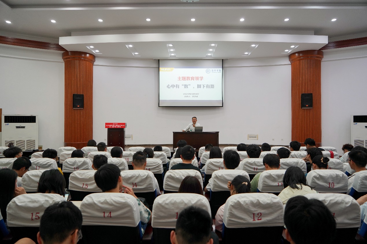 王正盛以《心中有“数”,脚下走路》为题进行讲授。他从习近平新时代中国特色社会主义思想中关于教育、科技、人才的重要论述讲起,围绕当代青年的责任与担当,从数学认识到数学专业学习,为同学们呈现数学学子的学习之路、职业出路与人生前路,鼓励新时代青年树立远大理想信念,勤学上进,始终走在大路上,也勉励青年们勇担基础学科重任,久久为功、精益求精,努力成长为新时代数学人才。