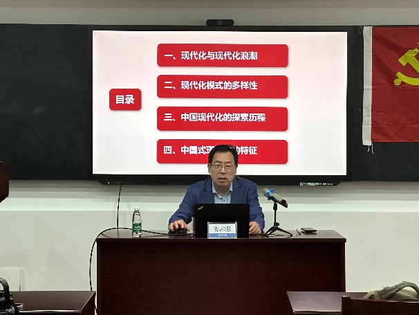为深入开展学习贯彻习近平新时代中国特色社会主义思想主题教育,贯彻落实党的二十大精神,526日,betway西汉姆联硕士生党支部邀请 “三个一”联系人——马克思主义学院姜志强教授讲授《关于中国式现代化若干问题的思考》专题党课,betway西汉姆联硕士生党支部全体党员参加,党课由硕士生党支部书记王怡昕主持。