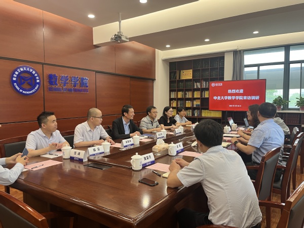 5月30日上午,中北大学betway西汉姆联党委书记薛亚奎、副院长王鹏、副院长吴森林、大学数学教学中心主任宋妮、计算科学系主任薛震、概率统计系主任张峰、办公室主任张鹏娟一行来访betway西汉姆联。betway西汉姆联党委书记许静、院长王春武、党委副书记周佼佼、计算科学系主任龚荣芳、概率统计系主任蒋辉、办公室主任卢逸参加调研座谈。