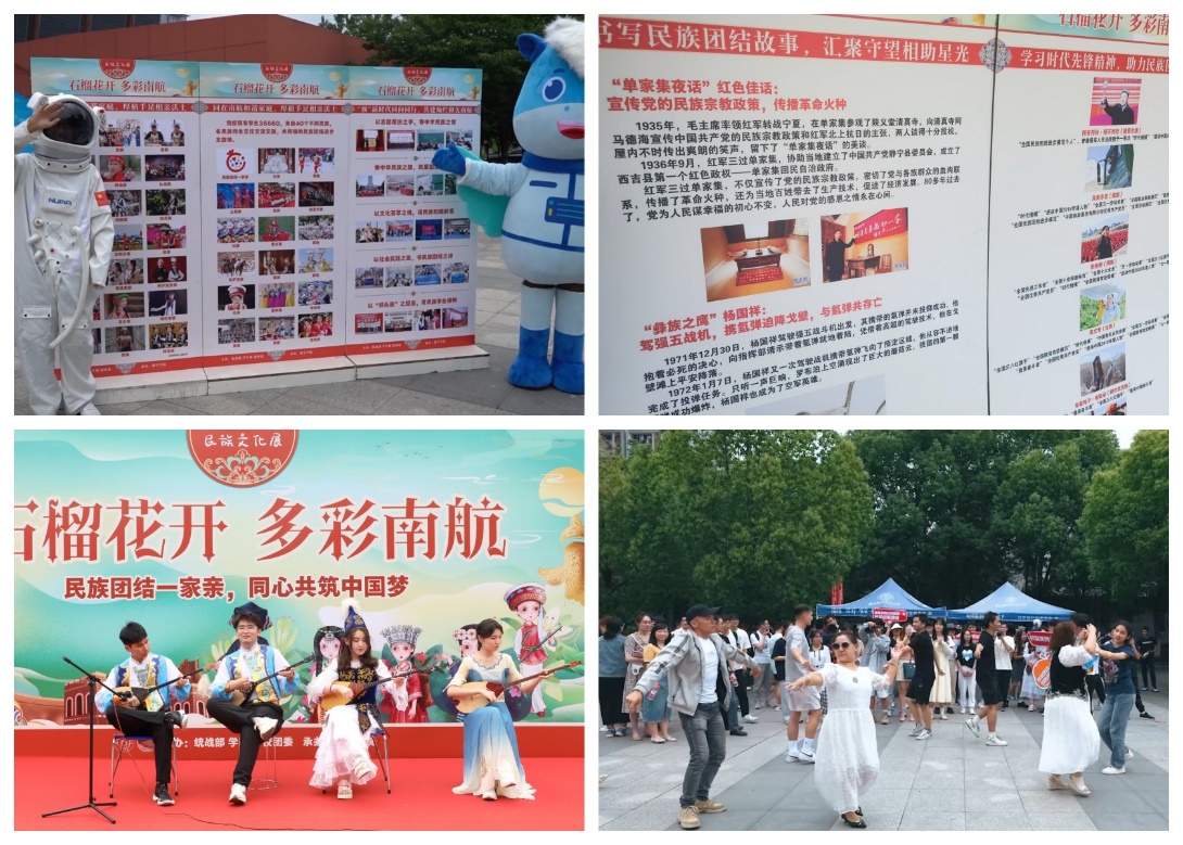 民族团结主题图片展跨越时空,为师生讲述“民族团结佳话”、展示“民族先锋事迹”、传递“身边榜样力量”、共建“南航和谐家园”。民族器乐展区上演师生精心编排的《喀秋莎》、《白羊岭》等节目,展现冬不拉、手风琴、热瓦普等乐器的别样魅力,吸引往来师生驻足观看。随着维吾尔族舞蹈、哈萨克族“黑走马”的热情节奏,现场师生欢乐共舞,沉浸式体会民族精粹。活动现场还展示了绚丽缤纷的民族服饰、特色民族物件等展品,师生近距离感悟民族文化深厚的底蕴和内涵,并在趣味民族游戏和丰盛的民族美食中,共享悠久灿烂的各民族文化。