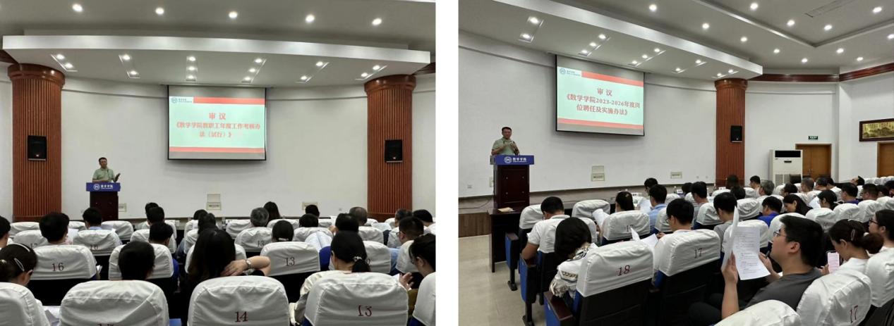 王春武向大会报告了《betway西汉姆联教职工年度工作考核办法》、《betway西汉姆联2023-2026年岗位聘任管理办法》并对年度工作量计算、岗位设置和聘期任务等进行了全面详细的解读。他强调,在新一轮岗位聘任工作中,betway西汉姆联始终围绕“学科导向、强化岗位、级岗分离、突出业绩”的指导思想,根据专业建设和研究生课程建设需求设立了特设岗位,有效打通年度考核与聘期考核,明确各岗位的聘期任务,有效调动全院教师的积极性和主动性,提高教学和科学研究水平,促进学院各项事业更好更快发展。