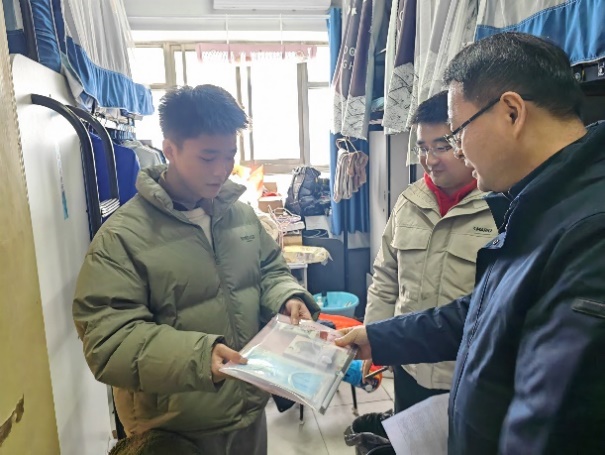 王春武为同学们送上考研加油包,一一关心同学们具体情况。他勉励同学们,考研考的既是知识也是毅力,大家一定要稳住心态,越到最后越需要保持信心和节奏。他表示,学院永远是同学们最坚强的后盾,为同学们做好保障、加油鼓劲,瑞雪兆丰年,相信同学们的奋战一定会收获理想成绩。