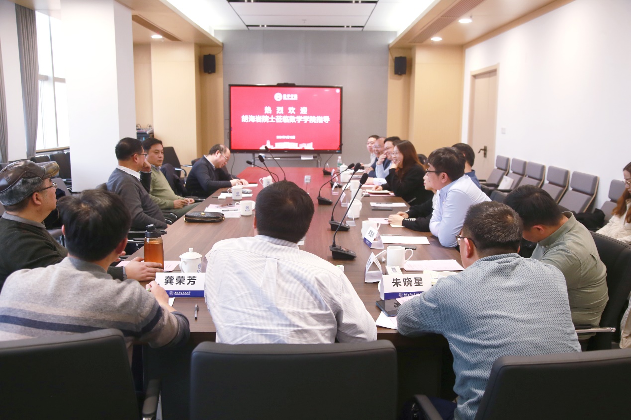 胡海岩围绕理工科高校数学学科发展路径展开交流,胡海岩对我校数学学科近年来取得的成绩表示了肯定,他回顾了北京理工大学数学学科的发展历史,横向对比了各高校数学学科发展态势,指出如何争取形成南航数学学科发展的突破点,在政策上争取学科长周期支持机制,使数学学科发展拥有更多自由活力。他回答了我院教师提出的理工融合发展切入点、数学学科发展未来趋势和人才培养方向等热点问题,给予数学学科发展以新的启示。他希望我校数学学科能够主动破解在发展过程中遇到的问题,为人才引育创造积极宽容的学术环境,构筑全面均衡发展的高质量学科体系。