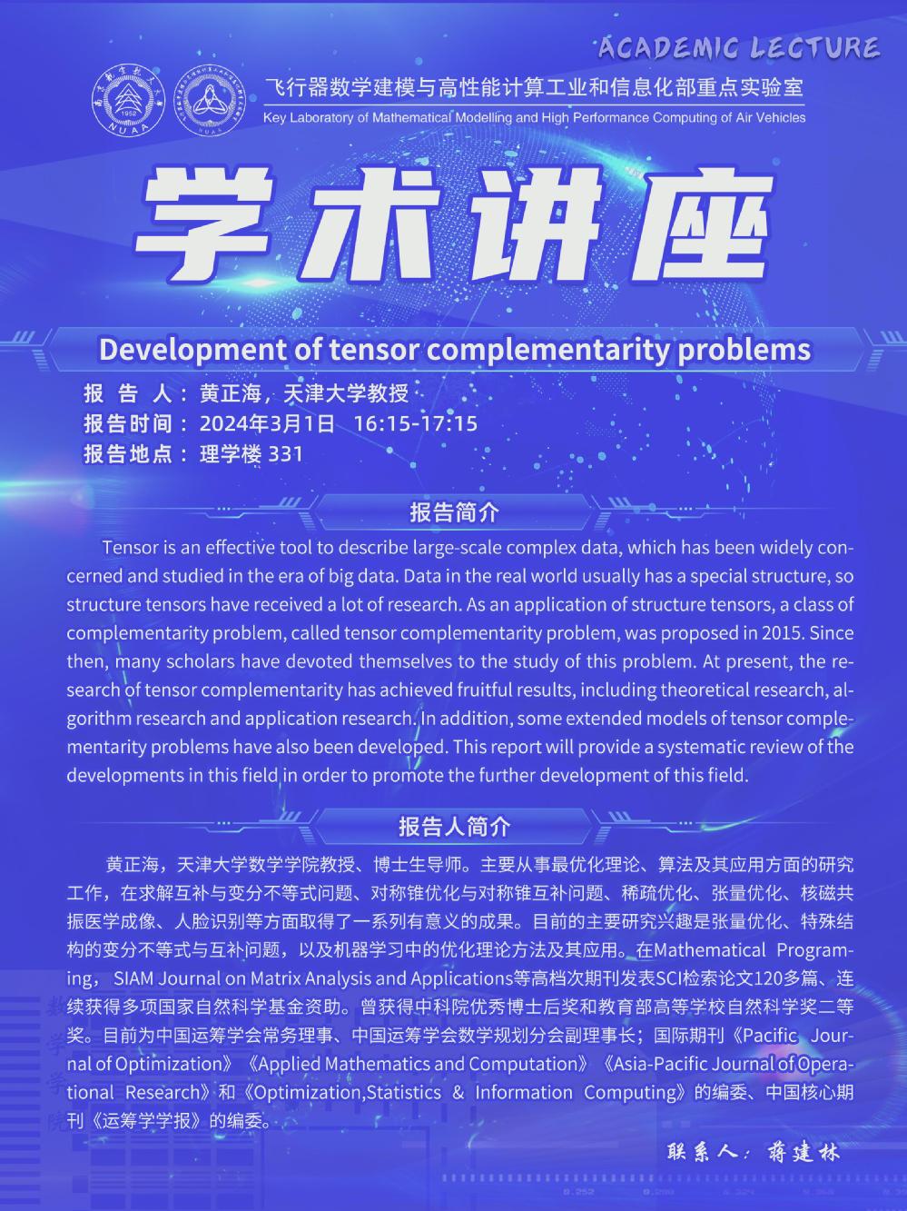 【学术讲座3.1 黄正海 天津大学】