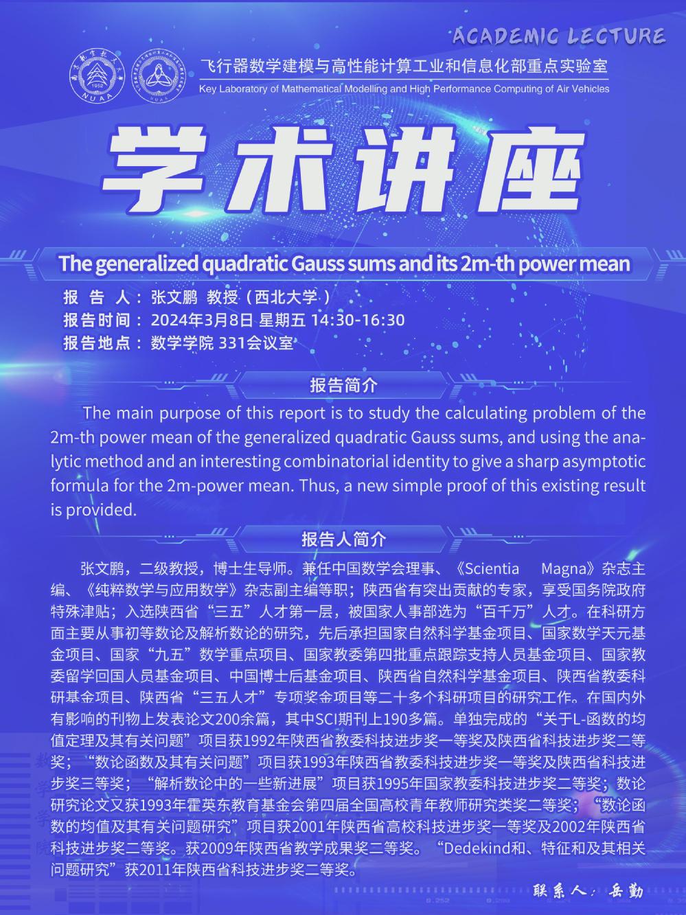 【学术讲座3.8 张文鹏 西北大学】