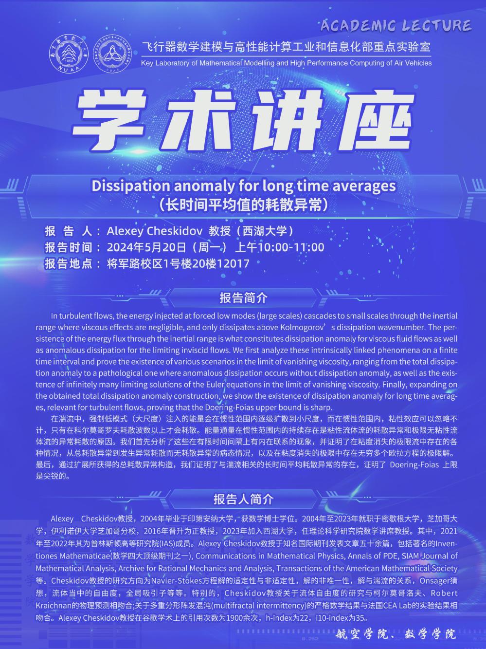 【学术讲座5.20 Alexey Cheskidov 西湖大学】