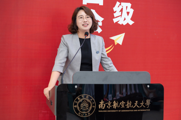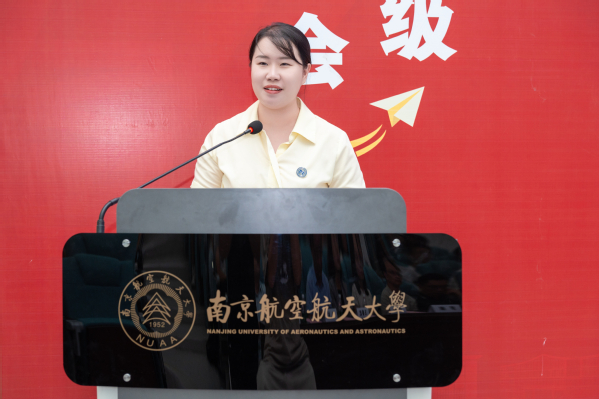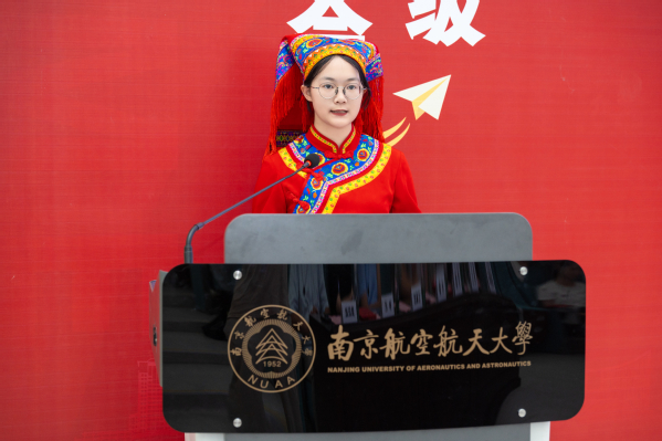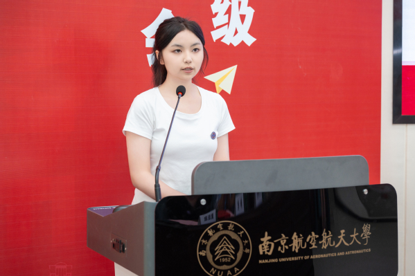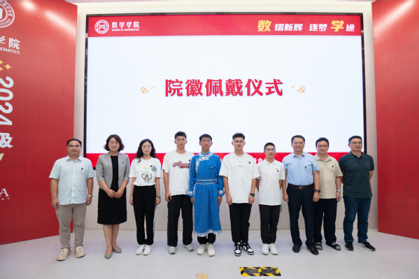 团委书记张鹤千从多维度介绍了学院为学生打造的特色成长平台,预科新生李佳慧、本科新生曹艺凌代表新生发言。院徽佩戴仪式环节,学院领导为新生代表佩戴院徽,台下新生同步佩戴院徽,宣告自己真正成为一名南航数学人。