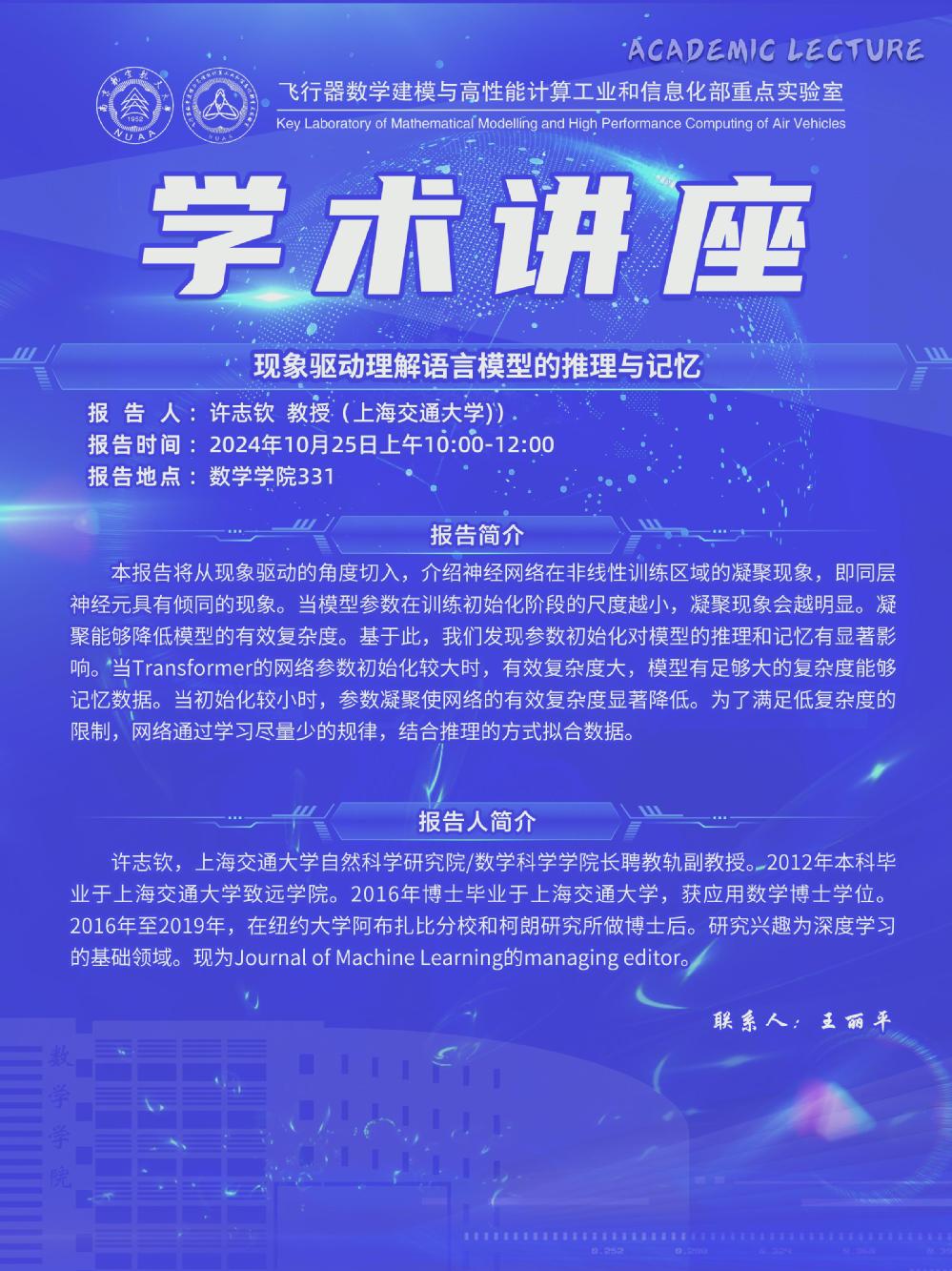 【学术讲座10.25 许志钦 上海交通大学】