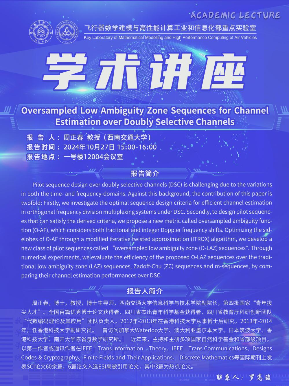 【学术讲座10.27 周正春 西南交通大学】