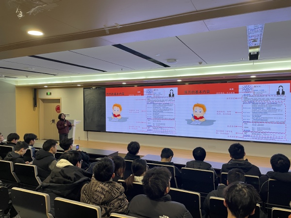 张月铭以“择业前三问”开启讲座,引导同学们思考如何确定自己的职业方向和岗位,详细讲解了简历制作的五大原则,深入剖析了简历制作的基本结构和内容选择,结合具体案例,详细解析了简历撰写中的关键要素和注意事项。同时,她还对当前就业形势进行了深刻剖析,鼓励同学们找准定位,迎接挑战,脚踏实地。