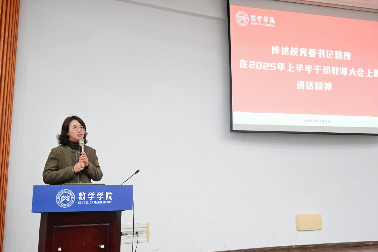 学院党委书记许静传达了校党委书记甄良在2025年干部教师大会上《提高认识 凝心聚力 改革创新 奋发作为 加速建设世界一流大学》的讲话精神。围绕“稳、进、精”三个视角进一步分析了学院所处的发展机遇与挑战,同时聚焦“精准谋划强党建、精细管理强队伍、精研业务抓实效”等三方面对学院2025年党委工作进行了详细部署。她指出,当前学校正处于改革发展的关键时期,学院聚焦重点考核指标,高站位布局,高标准谋划,为全年工作开好局、起好步打下坚实基础。各系/中心及办公室应迅速响应,细化工作任务,加强协同合作,全力推动各项工作落到实处,确保取得实效。同时,她强调,全体教职工要认清形势,勇于面对挑战,迎难而上,以实干实绩助力学校和学院高质量发展,为全面推进强国建设、民族复兴伟业作出更大贡献。