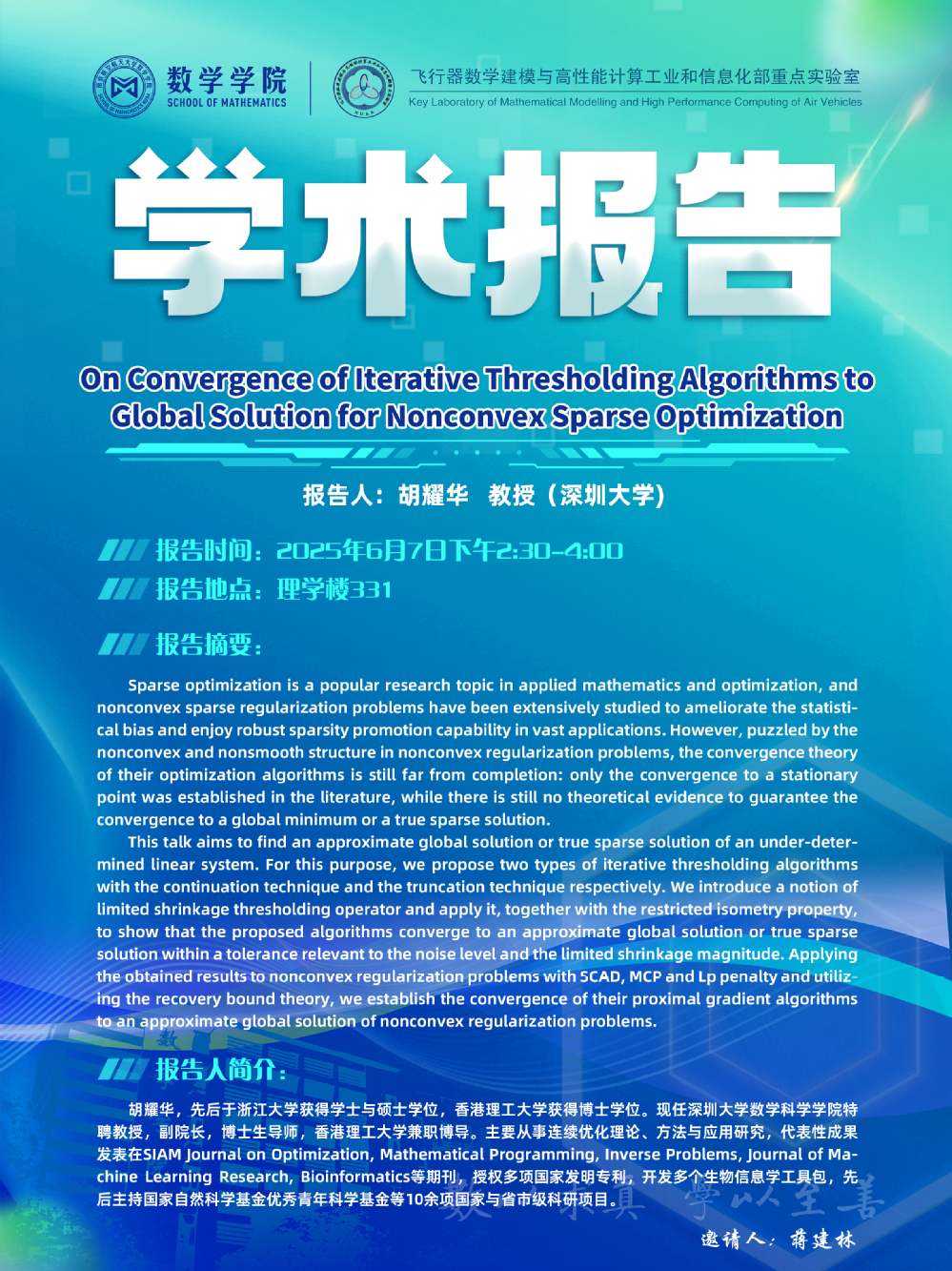 【学术讲座6.7 胡耀华 深圳大学】