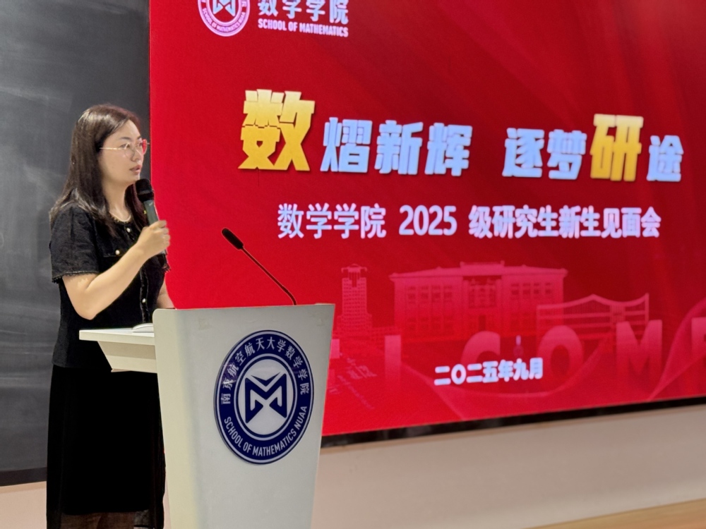 王亚鹏对新生加入南航、加入学院表示欢迎。她寄语同学们要从国家大势出发,淬炼家国情怀,坚守数学人的使命担当;要从人生规划考虑,珍惜研途时光,勤于实践,努力成长为新时代数学人才。