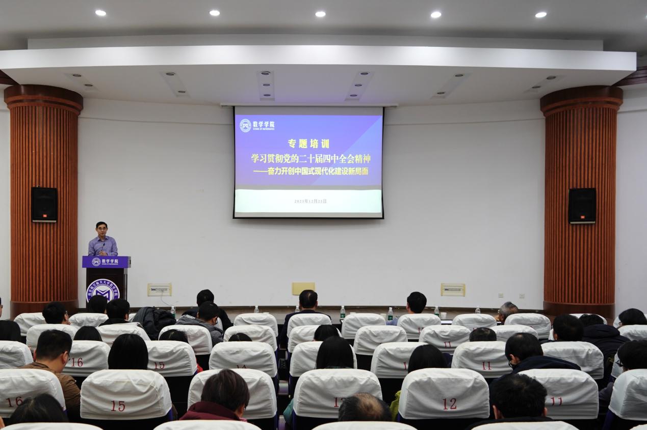 为深入学习贯彻党的二十届四中全会精神,引导全院师生深刻领会、准确把握全会核心要义与战略部署,12月25日,betway西汉姆联举行学习贯彻党的二十届四中全会精神校内宣讲团报告会。本次报告会特邀校内宣讲团成员、马克思主义学院朱彦振教授作专题辅导。学院班子成员、党员师生代表参加学习,报告会由学院党委书记张跃主持。