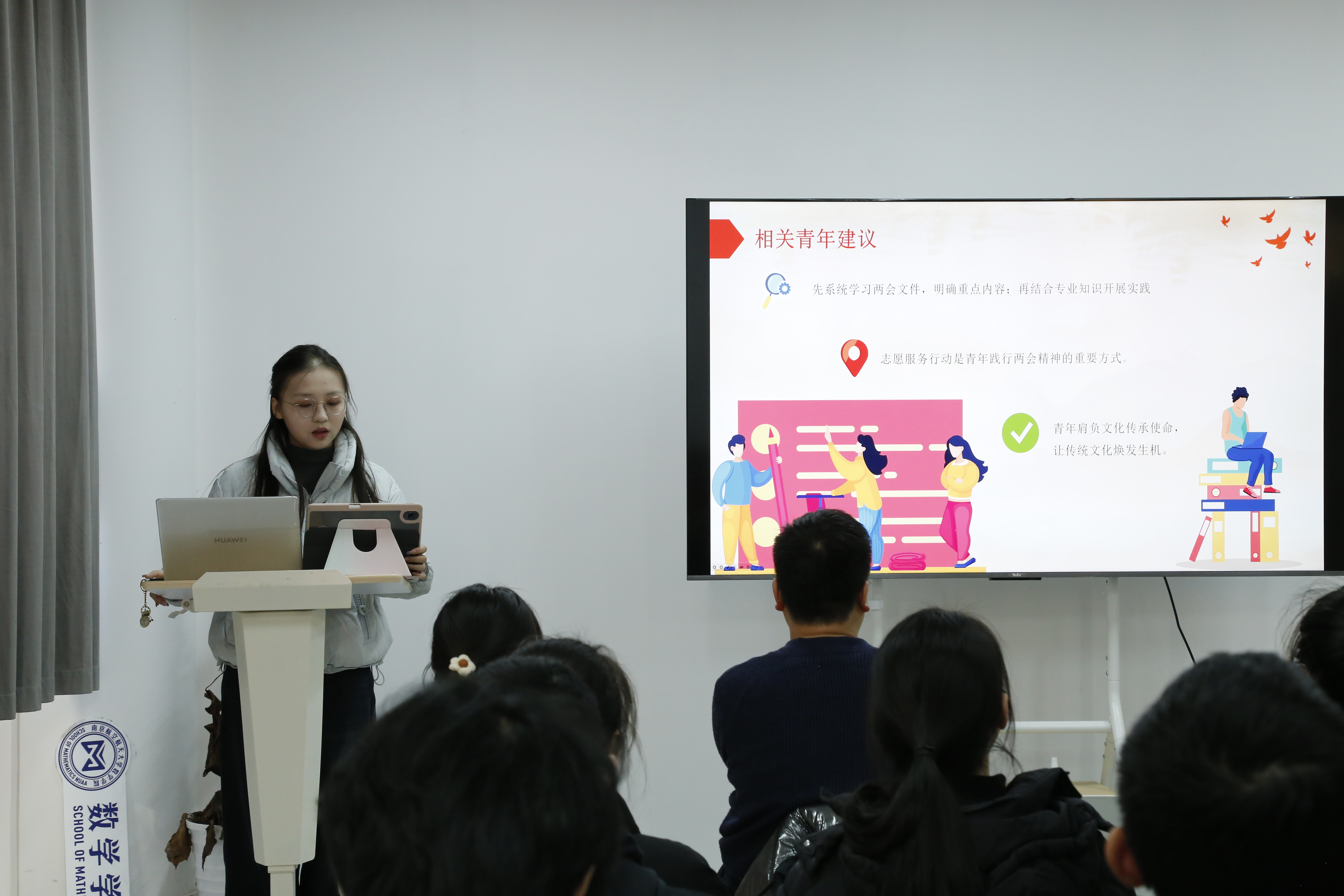 为深入学习贯彻全国两会精神,引导青年学子将个人理想融入国家发展大局,3月10日,betway西汉姆联0824101团支部、0824102团支部联合开展“青春建言担使命,挺膺奋进新征程”主题团日活动。学院计算科学系教师、0824101班班主任孔旺、0824101团支部和0824102团支部团员共同参加活动。