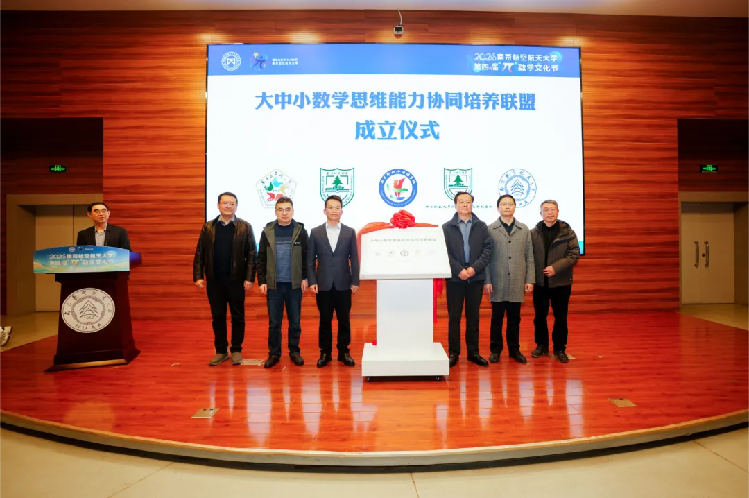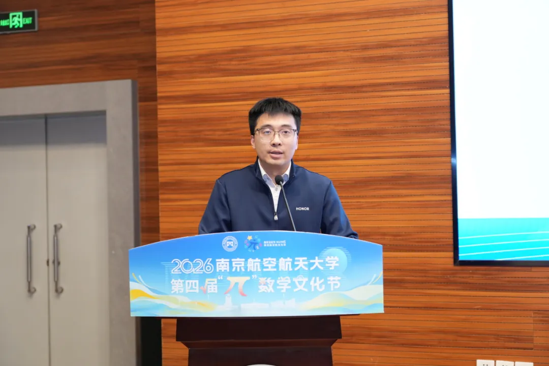 3月14日下午,在第七个国际数学节来临之际,我校于将军路校区一号楼4楼报告厅举办第四届“π”数学文化节开幕式暨首场讲座。校党委副书记刘宇雷,江苏省数学会副理事长、盐城工学院原党委书记、扬州大学原副校长刘祖汉,南京郑和外国语学校、南京师范大学附属中学、南师附中秦淮科技高中、南京五老村小学等4所中小学校领导,中国航空综合技术研究所、中国航发南京航空动力有限责任公司、南京钢铁集团、凤凰出版传媒集团、杭州海康威视数字技术股份有限公司、荣耀终端股份有限公司等6家重点单位代,我校教务部、研究生院、学生处、校团委、长空学院、牧星学院等相关部门负责同志,betway西汉姆联全体领导班子、师生代表以及中小学学生500余人参加活动。开幕式由betway西汉姆联党委书记张跃主持。