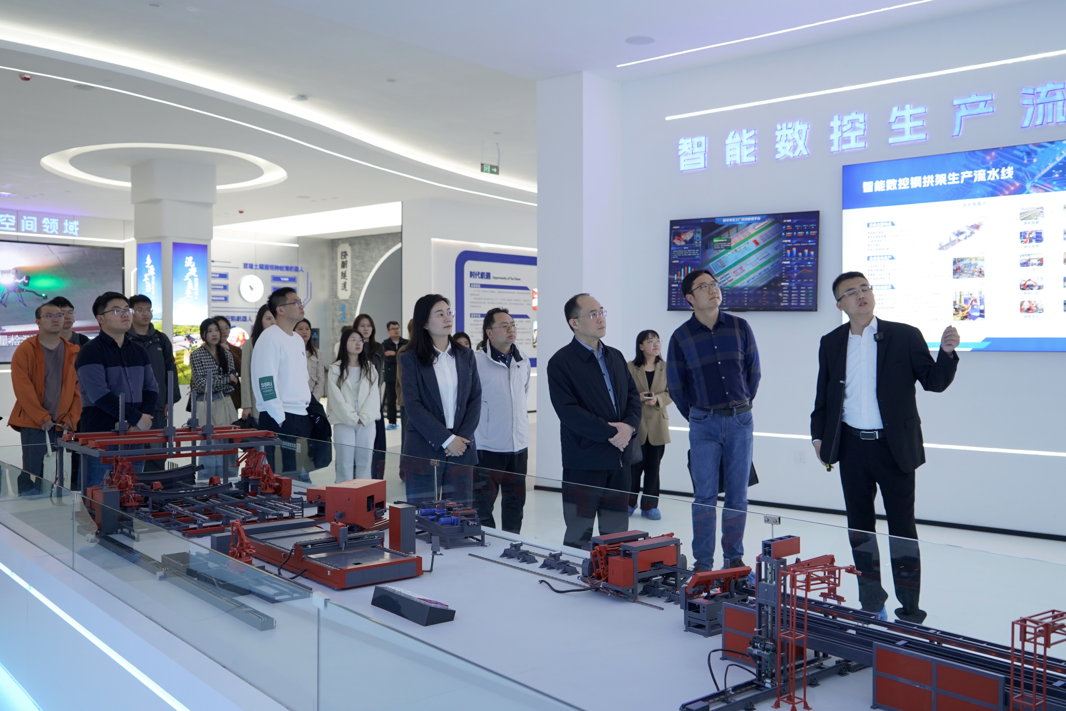 在南京智航科技发展股份有限公司,南京智航科技执行董事、总经理付高远,副总经理王可心、吕伟楠,产品研发中心经理杨航宇,综合管理部经理孙雪双热情接待调研团一行。王可心带领调研团参观企业展厅,围绕企业发展历程、战略布局、核心技术成果、智能建造与工程机器人研发应用等内容进行详细讲解。