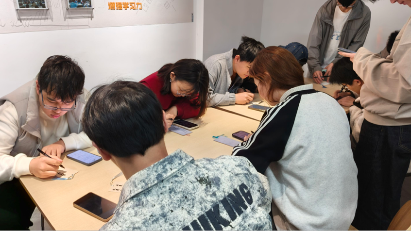 在书签漂流与共读墙创作中,大家从漂流箱中取出陌生的书签,品读他人心意,轻声交流感受。随后,同学们将金句抄在便利贴上,共同贴满白板,汇成一面共读墙,让温暖书语定格阅读记忆。